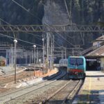 Treno della linea SFM3 in partenza da Bardonecchia per Torino, spinto dalla locomotiva E.464.615.